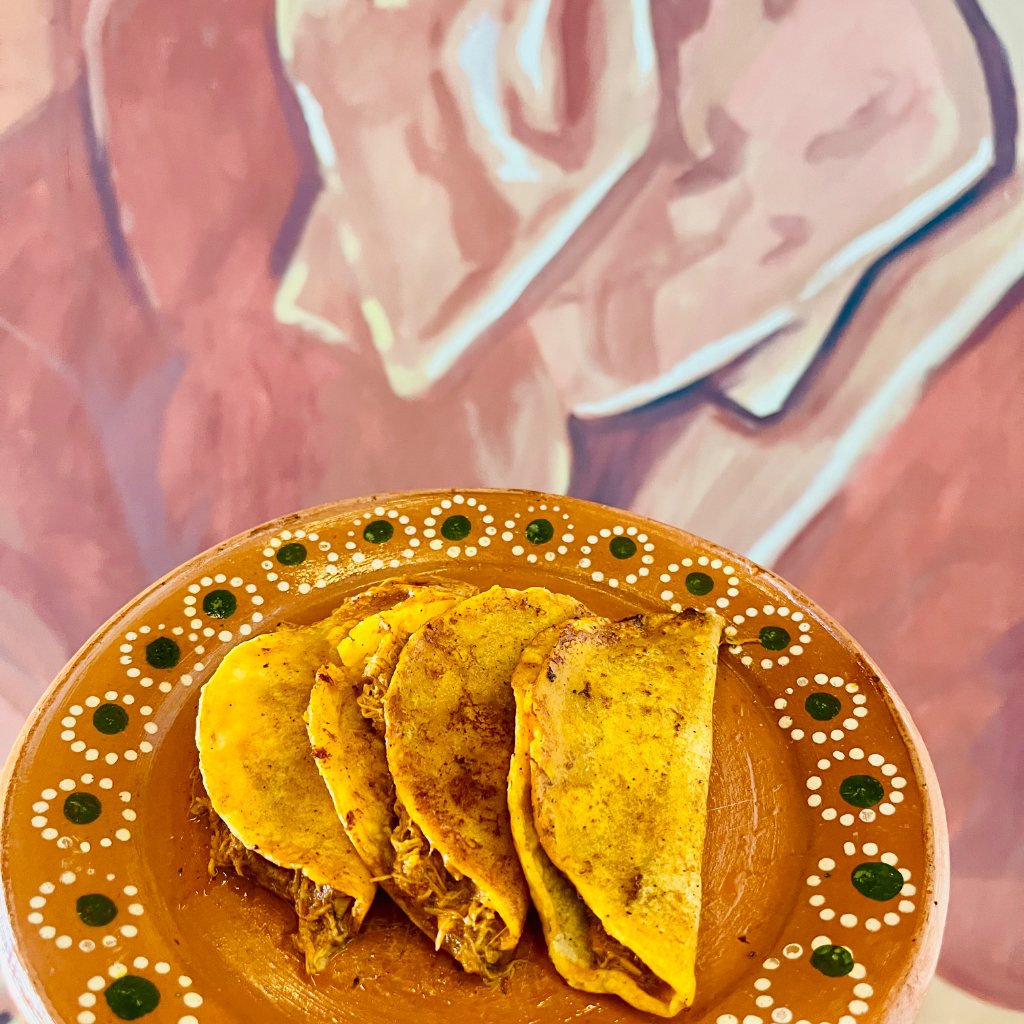 5 Piezas de tortilla de maíz frita rellenas de cochinita pibil